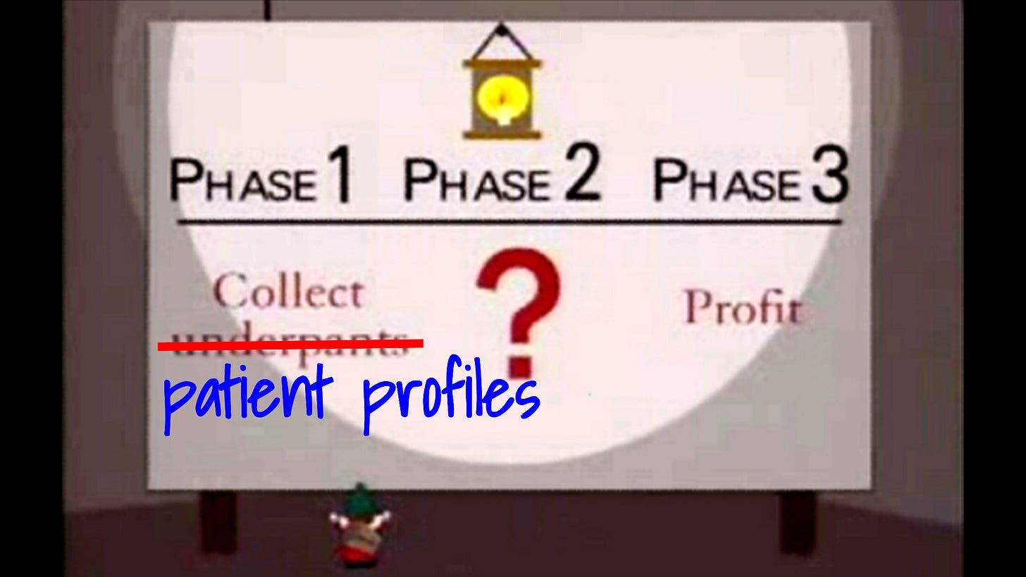 Under its original business model, CrossChx gave free service to hospitals and collected patient profiles. Here’s the original business plan: