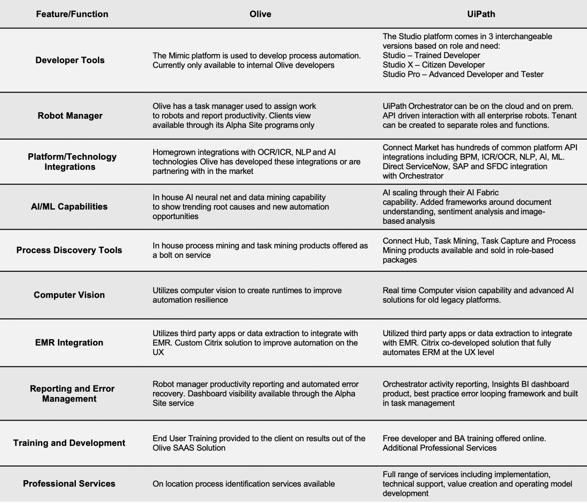 That’s the money quote right there. Olive had domain expertise in a few healthcare business processes. RPA vendors offer tools and services to automate all of an organization’s processes.